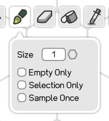 The Brush Tool is used to paint tiles on the currently selected Layer. Hold the left mouse button down and drag the cursor across the canvas to paint multiple tiles.