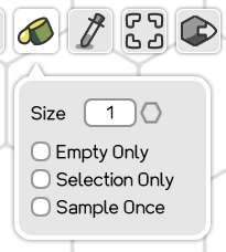 Clicking the tool button or pressing its key will hide respectively toggle the Eraser Tool Dialog, a little window below the button.