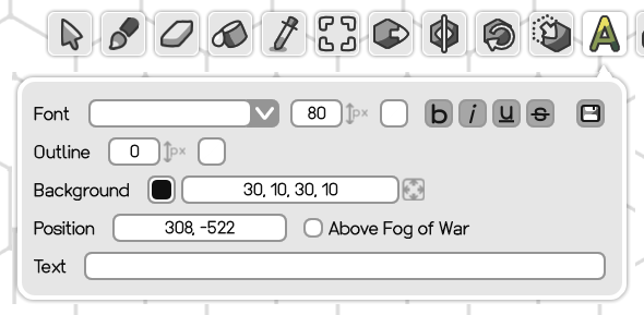 The Map Label Tool is used to create tile- and layer-independent text labels. Click somewhere on the map to create a new Map Label. A red cross (